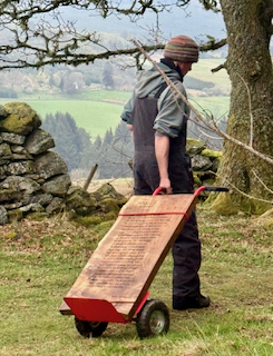 A new poem by Taylor Strickland was installed today on the Poetry Path. Entitled "Dunkeld", for David Kinloch, the poem takes us to The Cross and into St Ninian's Garden, in the heart of Dunkeld. The pictures show Martin Reilly, helped by residents of the Estate Workshop.