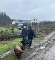 Whatever the weather, the horses, sheep, goats, pigs, cattle, chickens and ducks all still need feeding. At the Horses, riding has not been possible but Duke, Marina, Finn and Indy still need feeding and the fields need to be cleared of horse poo.